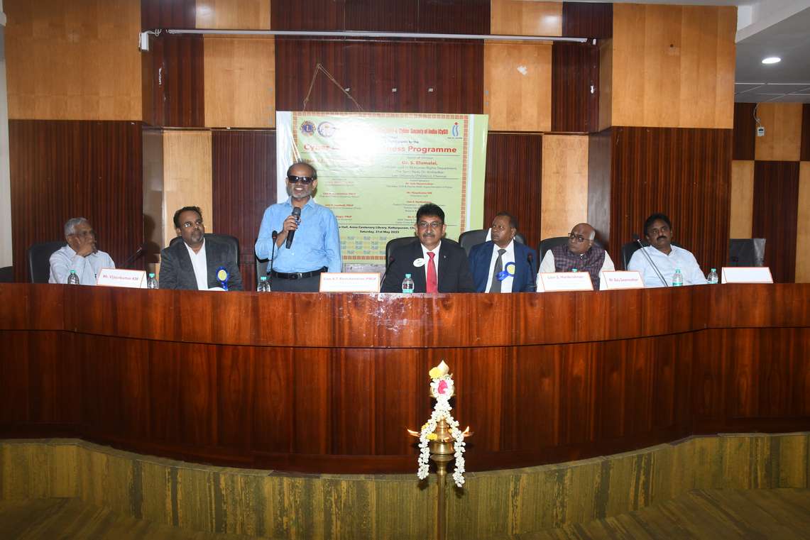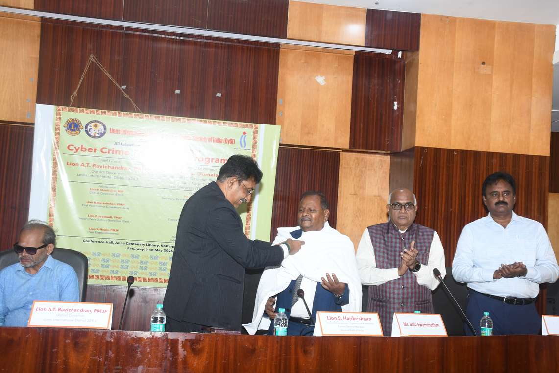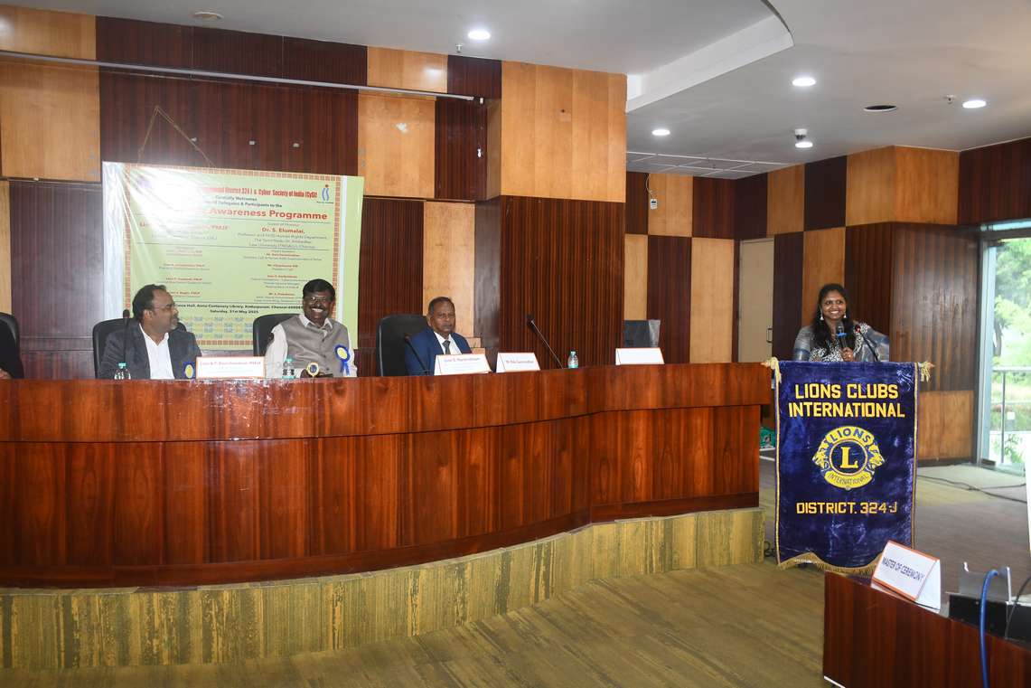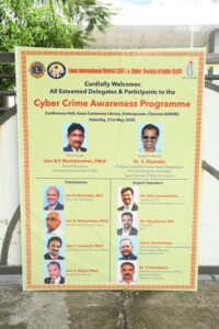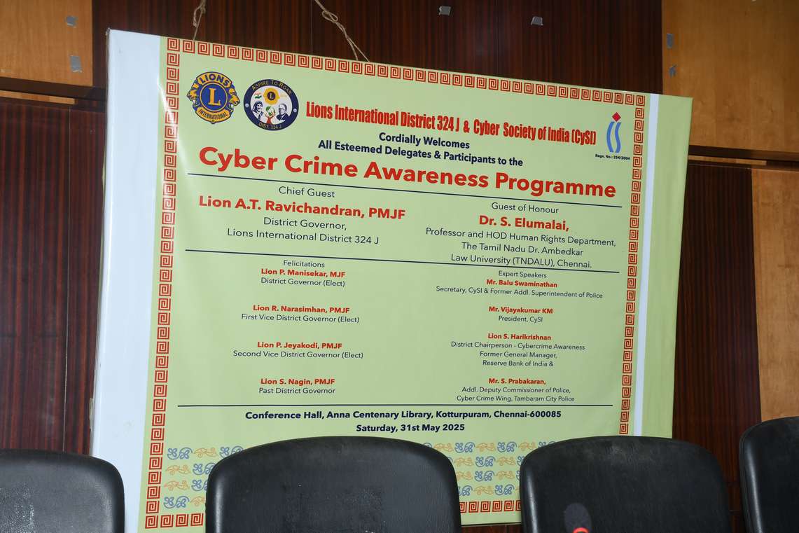 Cyber Crime Awareness Programme jointly organized by Lions International District 324J and Cyber Society of India , was successfully held on Saturday, 31st May 2025 at the Conference Hall, Anna Centenary Library, Kotturpuram, Chennai — 85.
