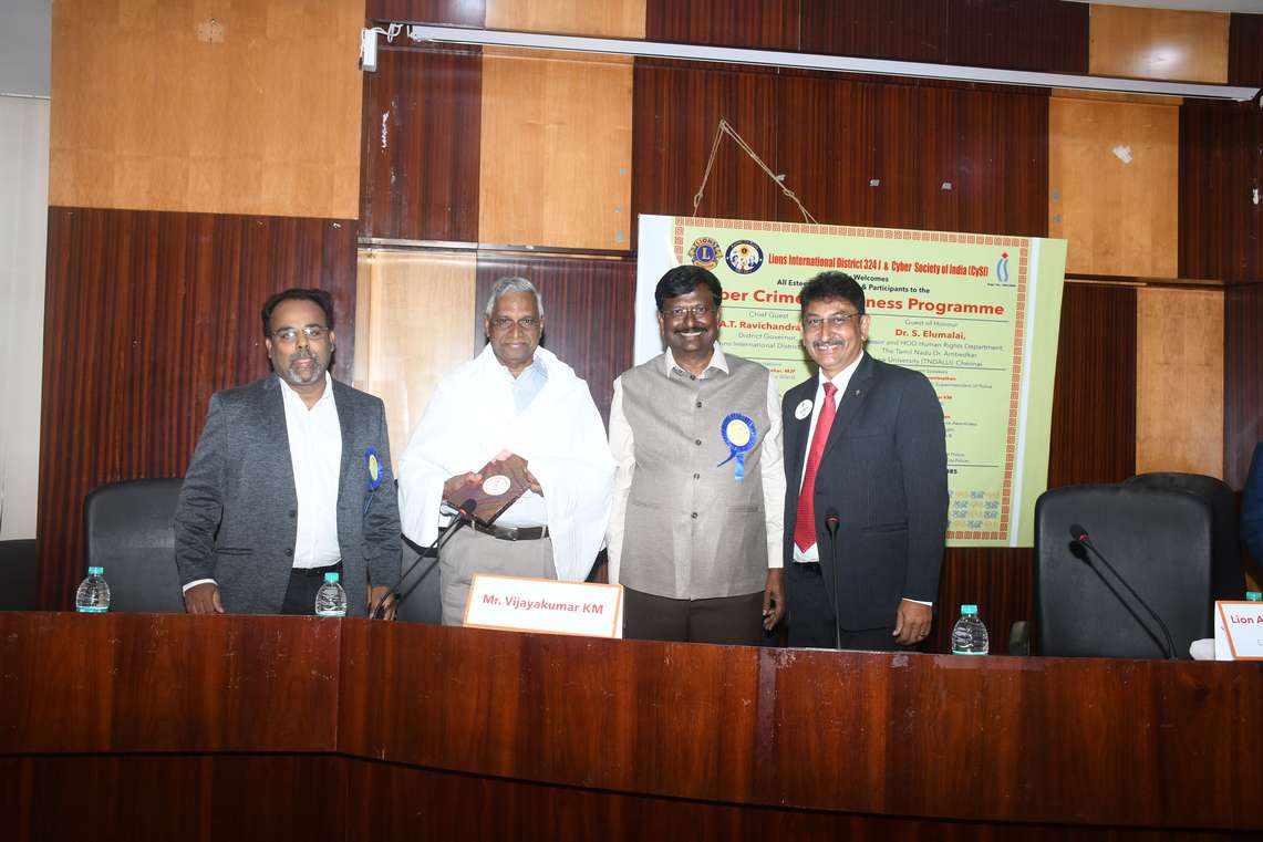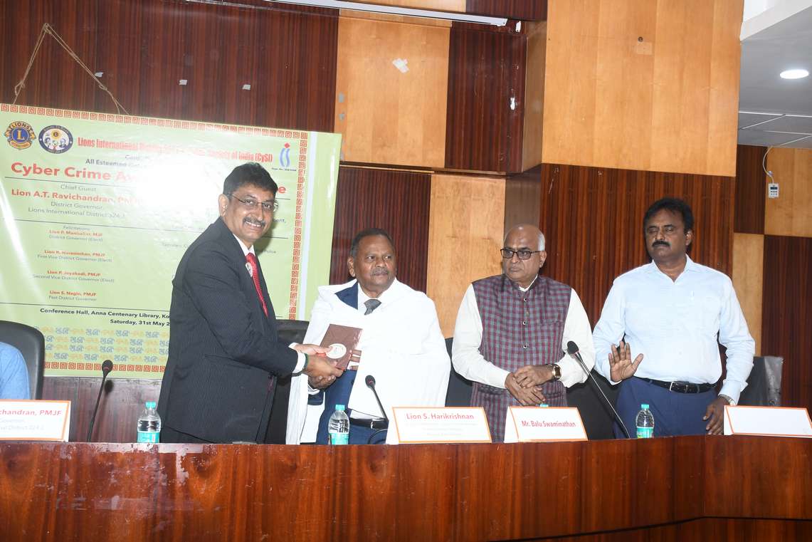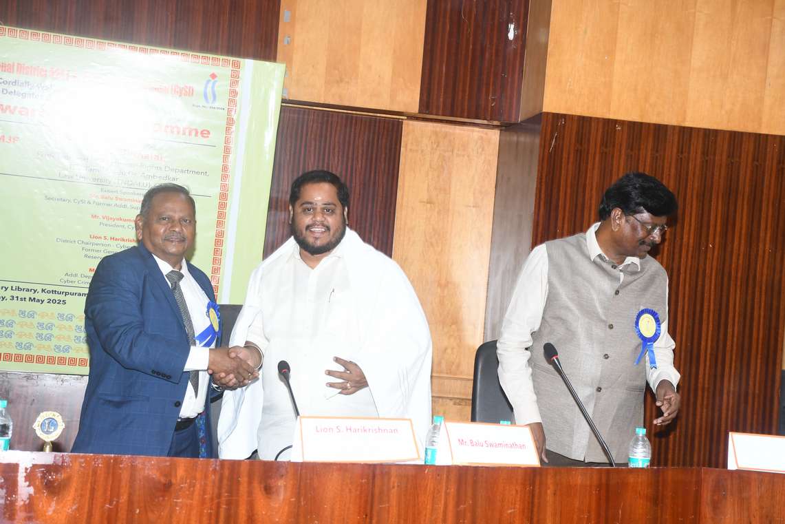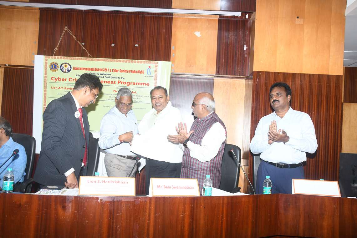 Cyber Crime Awareness Programme jointly organized by Lions International District 324J and Cyber Society of India , was successfully held on Saturday, 31st May 2025 at the Conference Hall, Anna Centenary Library, Kotturpuram, Chennai — 85.