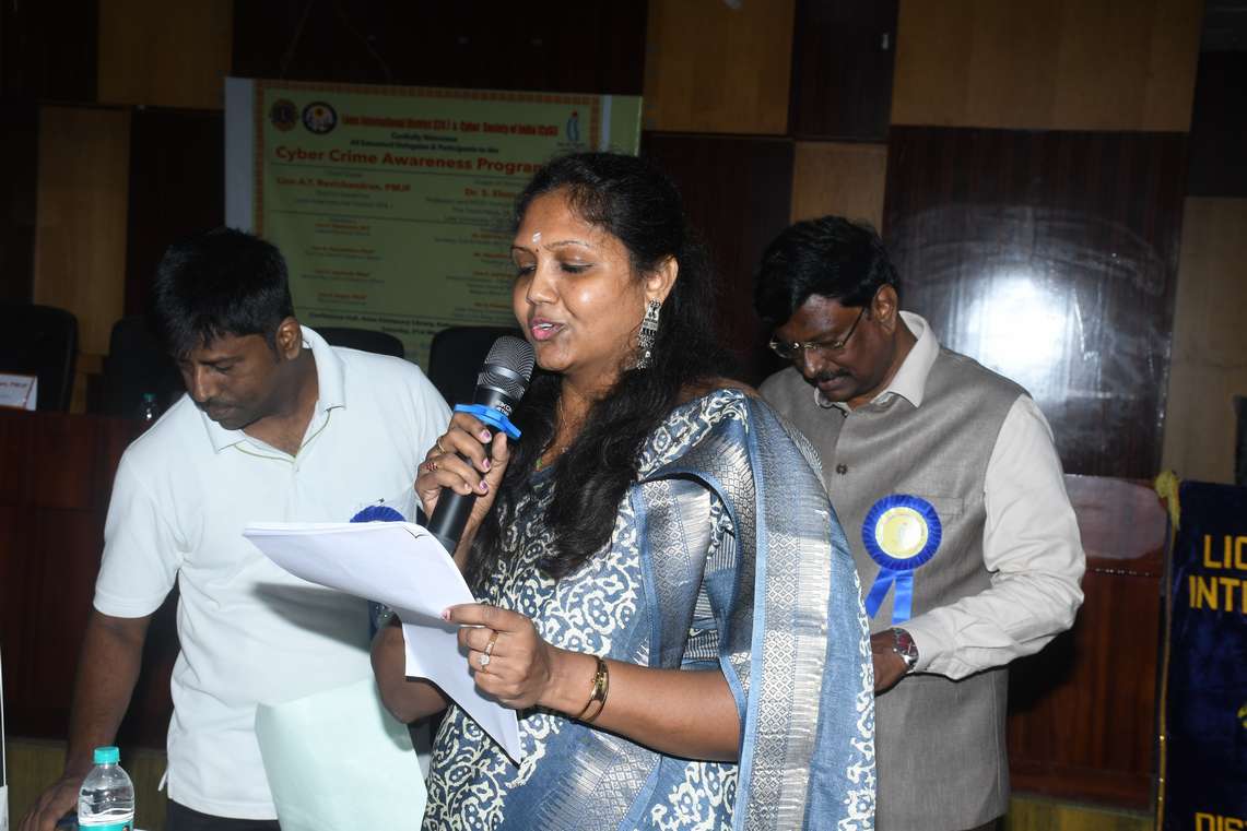 In a significant move to promote public awareness on cyber safety, the Cyber Society of India (CySI), in collaboration with Lions International District 324 J, organized a Cyber Crime Awareness Programme at the Anna Centenary Library Conference Hall, Chennai. The event witnessed active participation from around 100 attendees, who were awarded participation certificates. The proceedings were efficiently anchored by Mrs. Pritika Balu, who served as the Master of Ceremony.
