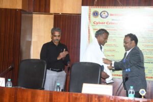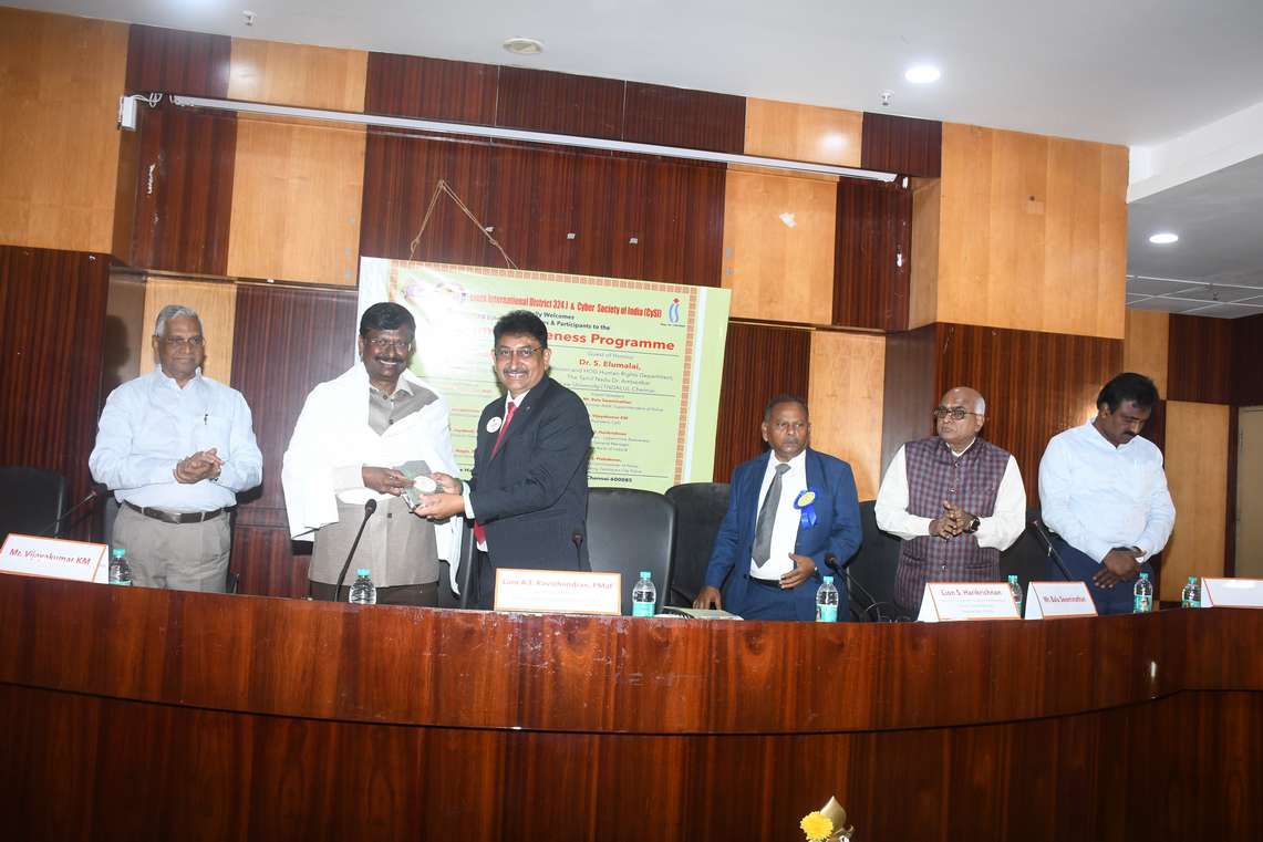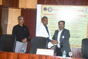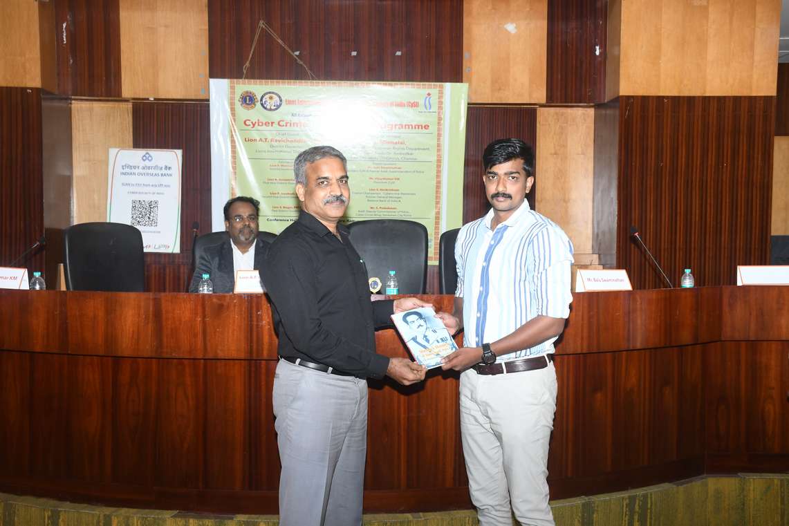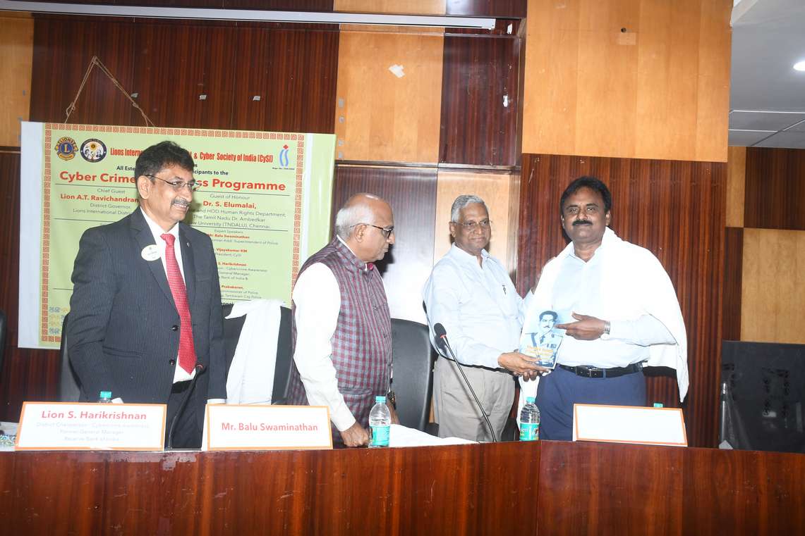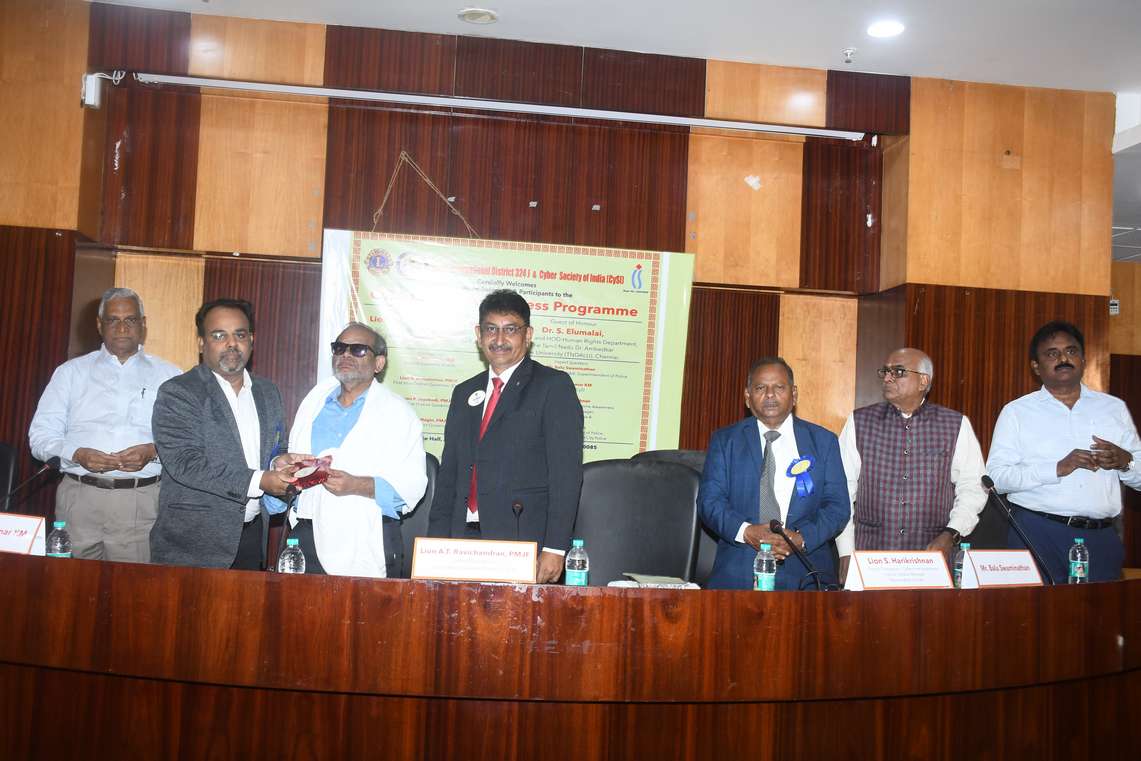 The programme was inaugurated by Lion A.T. Ravichandran, PMJF, District Governor, Lions District 324 J, who underlined the collective responsibility required to combat the growing threat of cybercrime. Dr. A. Thiyagarajan, Senior Advocate, and Dr. S. Elumalai, Professor and Head, Department of Human Rights, The Tamil Nadu Dr. Ambedkar Law University, delivered the Guest of Honour addresses, focusing on legal aspects and the need to protect digital rights.