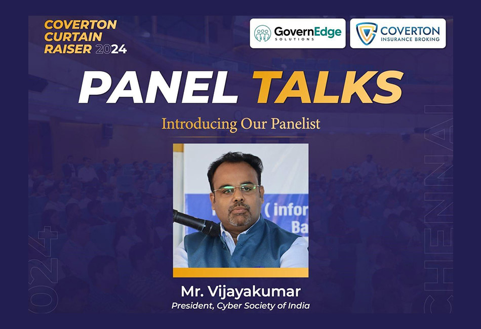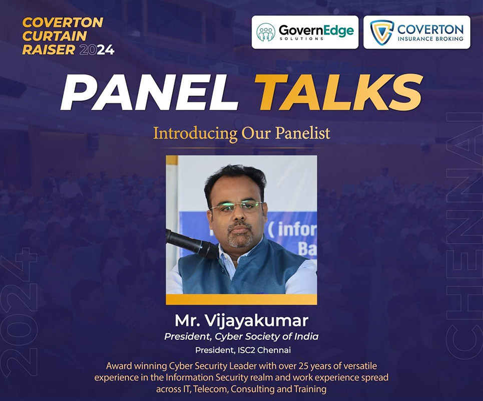 Mr. Vijayakumar KM, President – Cyber Society of India spoke at the Coverton Insurance Broker Launch event. He had the pleasure of sharing his views in the Panel discussion on what specific protections can Cyber Insurance offer to Organization in the given today’s cyber threat landscape.