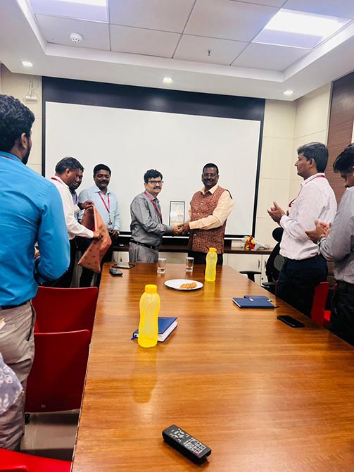 Facilitating the event, felicitations were extended by Mr. Ramesh V, National Credit Manager, along with Mr. Harirajan and Mr. Muthukrishnan, Zonal Credit Managers. Mementos were presented by Mr. Ramesh, Mr. Murali, and Mr. Sathish, acknowledging their contributions.